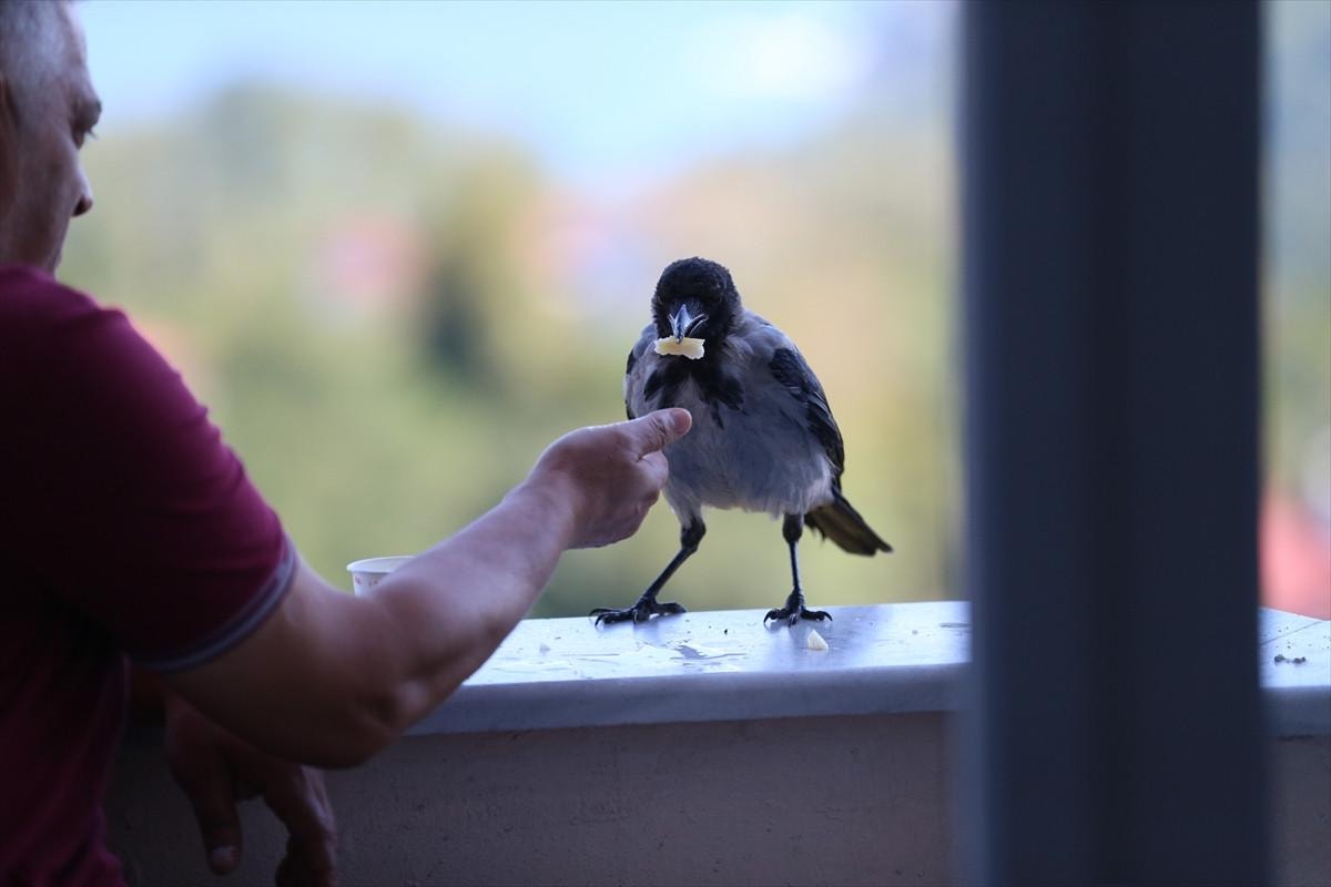 Karganın zamanla kendisini takip ederek eve kadar geldiğini söyleyen Demirbaş, “Bir süre sonra balkona gelerek cama vurmaya başladı. Her gün ona su ve yiyecek veriyoruz. En çok ekmek, kaşar peyniri ve hamsiyi seviyor.” dedi.