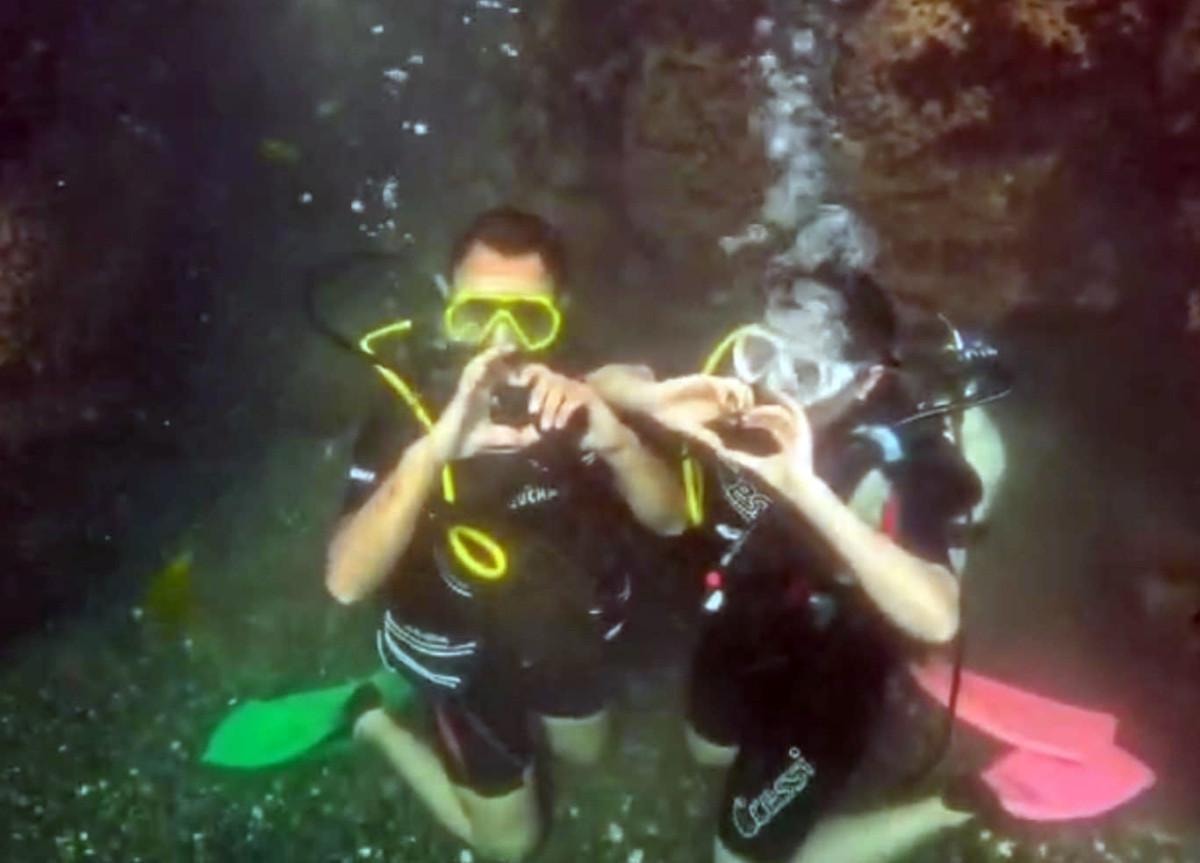 Su altında yüzük takan çift, dalgıçların su altı kamerasıyla kayda alındı. Çift, teklif sonrası karaya çıkıp duygularını da paylaştı.