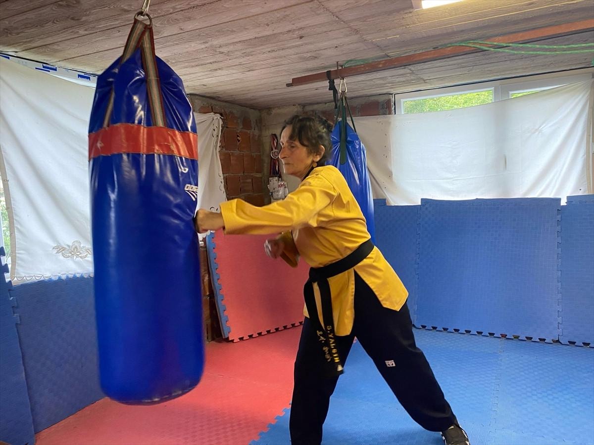 Estonya'nın başkenti Tallinn'de 16-17 Nisan tarihlerinde düzenlenen Avrupa Tekvando Poomsae Şampiyonası'nda bronz madalya kazanan 74 yaşındaki Sevgican Yalçın, gözünü dünya şampiyonluğuna çevirdi.