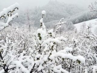Devam eden kar yağışıyla fındık bahçeleri ve meyve ağaçları karla kaplandı. Çiftçiler, fındığın zarar görebileceği endişesi taşıyor.