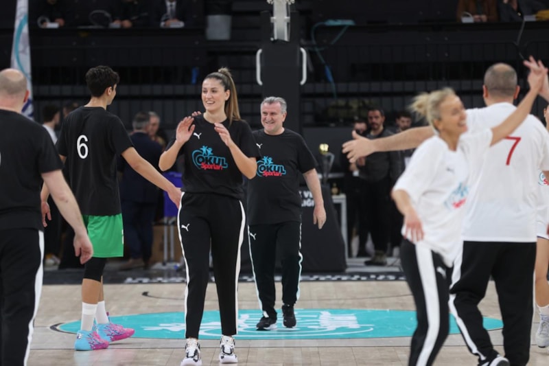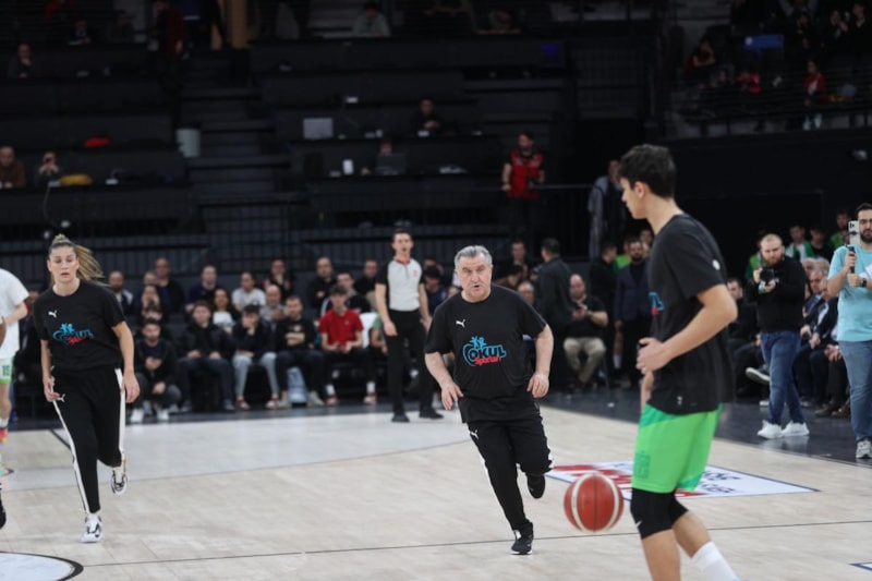 Eski milli basketbolcular Harun Erdenay, Ömer Onan, Bahar Çağlar Ökten ve Nilay Kartaltepe ile finalist takımların oyuncularının yer aldığı karma takımlarla oynanan maçta Bakan Bak, attığı basketlerle dikkati çekti.