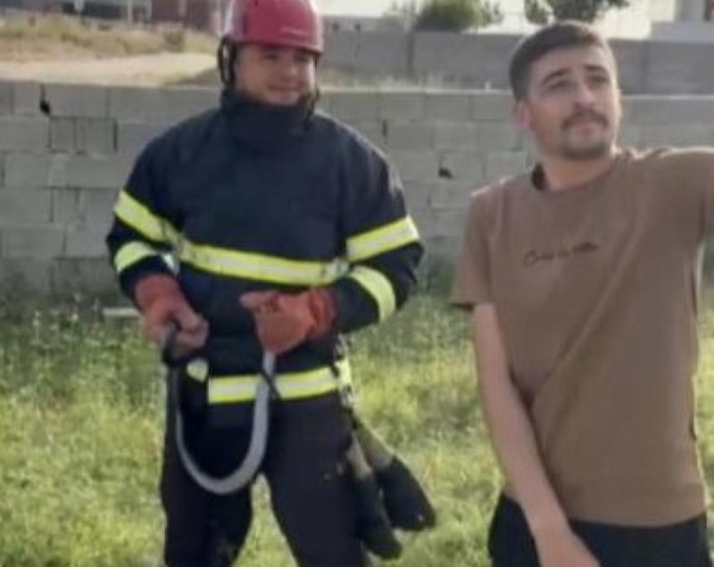 Kent merkezinde bahçeye giren bir buçuk metrelik kara yılanı yakalayan itfaiyeci yılana su içirirken, bazı vatandaşların yılanla hatıra fotoğrafı çektirdiği anlar da kameralara yansıdı.