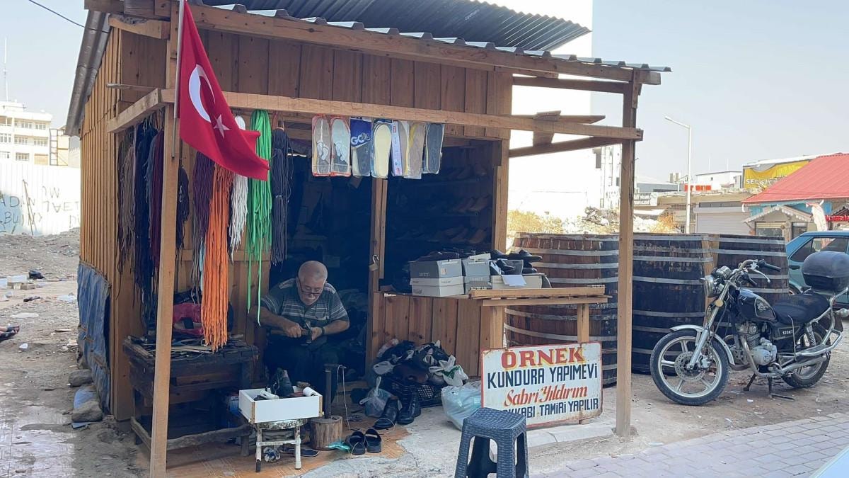 Biz de bunu kaldıramayacağımızı söyledik. Ben geldim, bir baraka yaptım kendi imkanlarımla, 3 metrekare içerisinde ayakkabı yapıyorum, sökük yapıyorum, çanta yapıyorum. Ayakkabıyı sıfırdan kendim yapıyorum. Zaten benden başka da ayakkabı yapan kişi kalmadı. Osmaniye'de son usta benim.