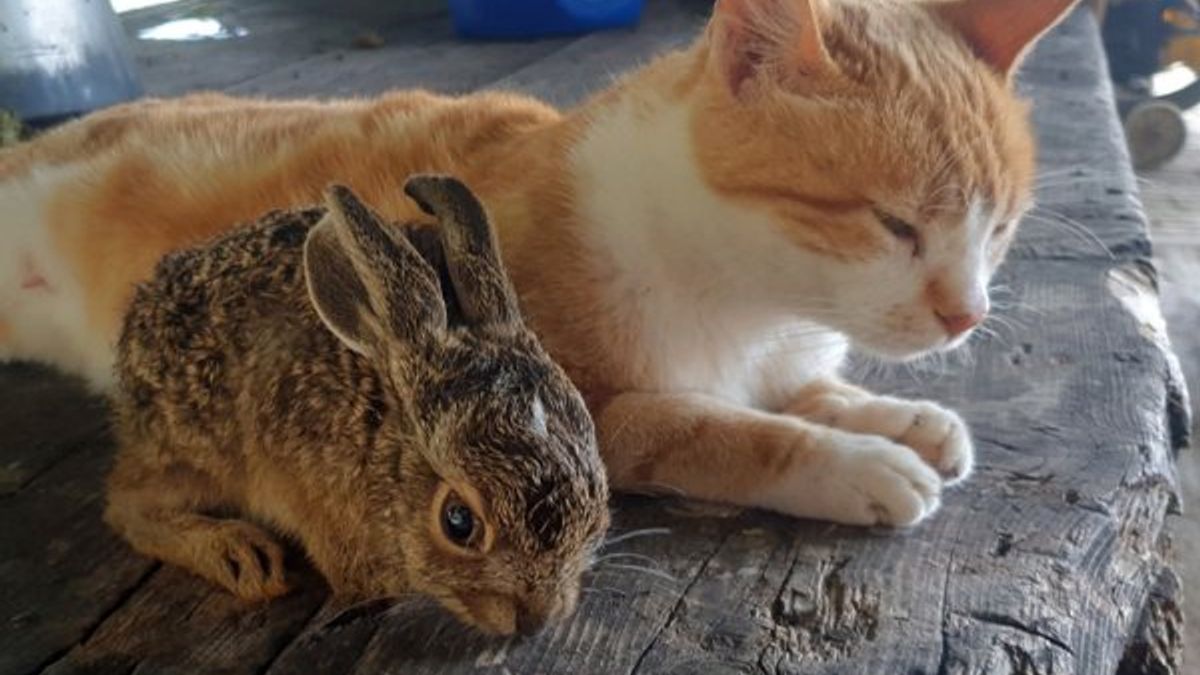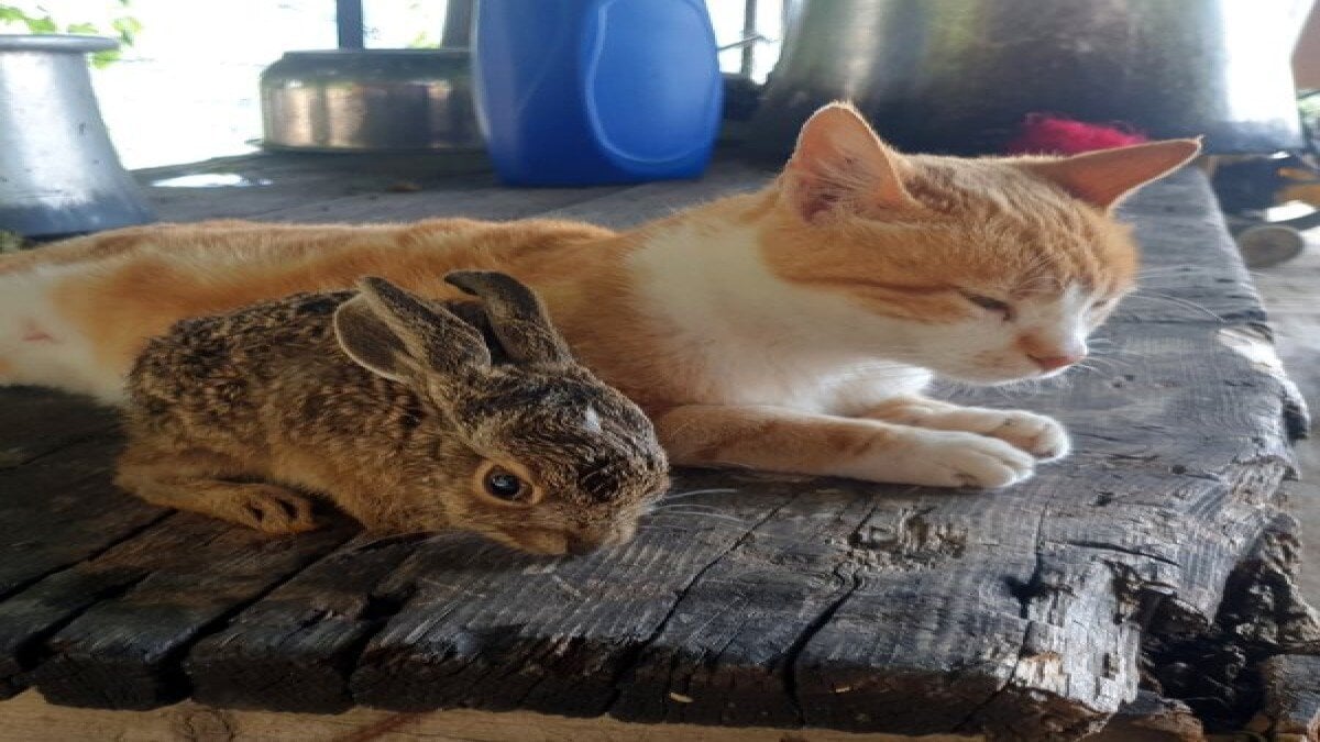 Karaoğlu, elleriyle beslediği ve Pamuk adını verdiği tavşanı, yeni doğum yapan evin kedisi Sarıkız'ın emzirdiğini görünce çok şaşırdı.