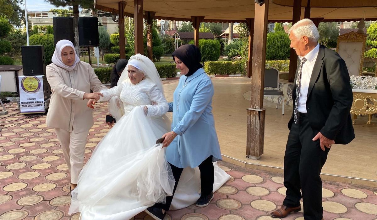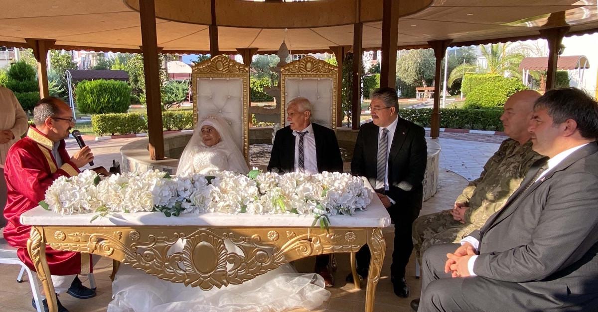 Huzurevinin bahçesinde yapılan törende gelinlik giyen Hatice Sağır ile Celil Kurt'un nikah şahitliklerini ise Osmaniye Valisi Erdinç Yılmaz, 12'nci Komando Tugay ve Garnizon Komutan Vekili Albay Hakan Kocabaş ile Aile ve Sosyal Hizmetler İl Müdürü Tolga Nacar yaptı.