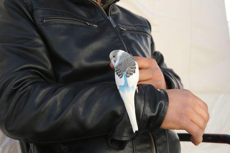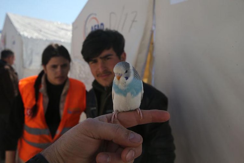 Kafes dışında da besledikleri muhabbet kuşunun insanlardan kaçmadığın aktaran Çimen, "Çadır kentin maskotu oldu." dedi.