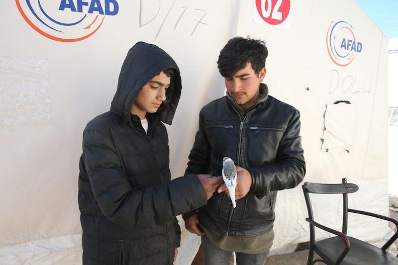 Osmaniye'de, 6 Şubat'ta muhabbet kuşunun çıkardığı sıra dışı seslere uyanarak dışarı çıkan aile bireyleri, depremde hasar gören evlerine giremedikleri için çadır kentte barınıyor.
