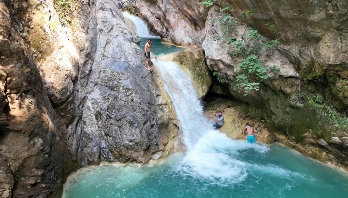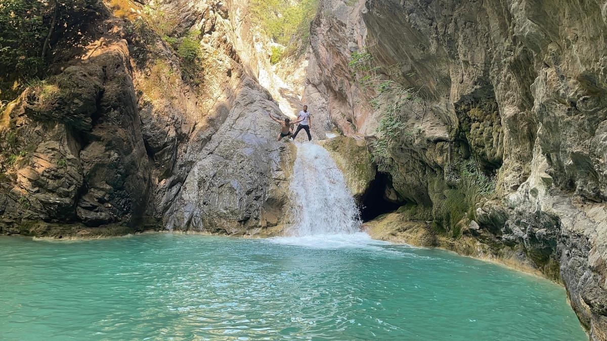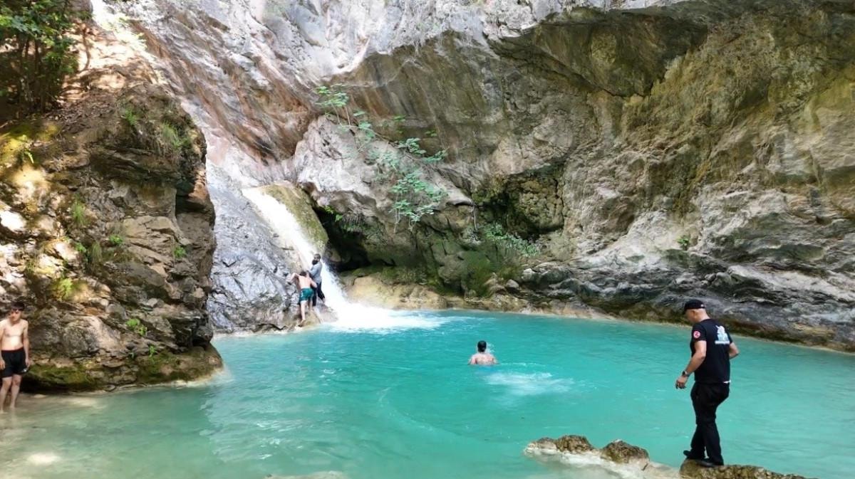 Hem doğallığı hem de serin suları ile dikkat çeken Sarısu Şelalesi'nde vatandaşlar, serin sularda doğa ile iç içe vakit geçiriyor.