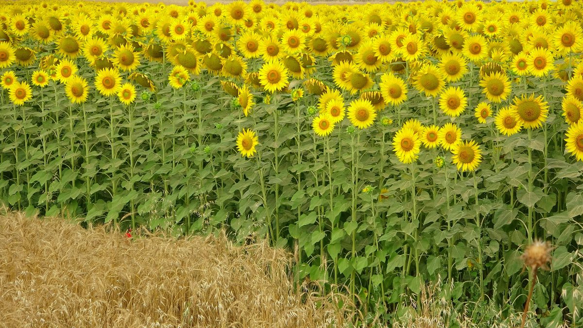 Nisan ayında ekilen yağlık ayçiçeği tarlaları güzelliğiyle görenleri kendisine hayran bırakıyor.