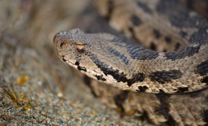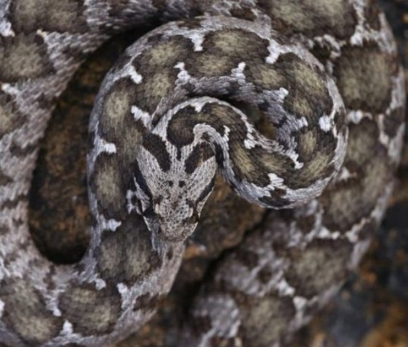 "Kuyruğu kısa ve küt, vücudu boyuna oranla kalındır. Zehirli bir tür olmasına rağmen saldırgan değildir. İnsanları gördüğünde genellikle tıslayarak uyarı verir."