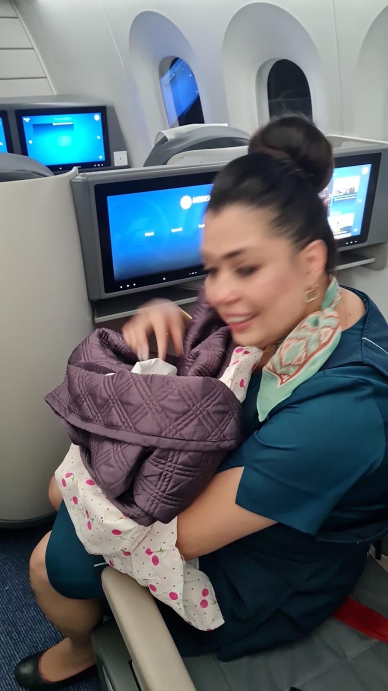 27 yaşındaki Sitora, uçakta uygun bir alana alınarak doğum hazırlıkları başladı. Kabin ekibinin yardımıyla gerçekleşen doğumda bir erkek çocuk dünyaya geldi.