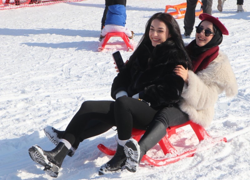 Palandöken'de kayak yapmanın güzel olduğunu belirten Eslim Dere, "Palandöken çok kalabalık ama kızak kaymak çok keyifli." dedi.