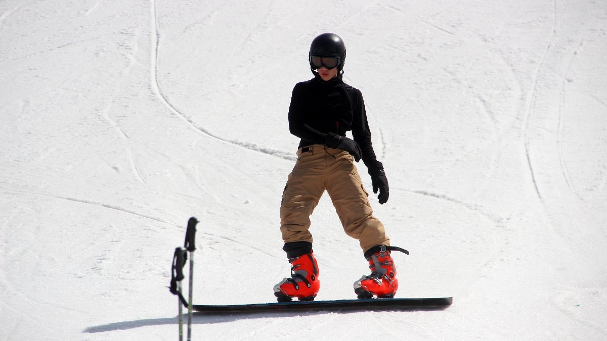 Kayak merkezinde yerli turistler kayak ve snowboard yapmanın keyfini çıkarıyor.