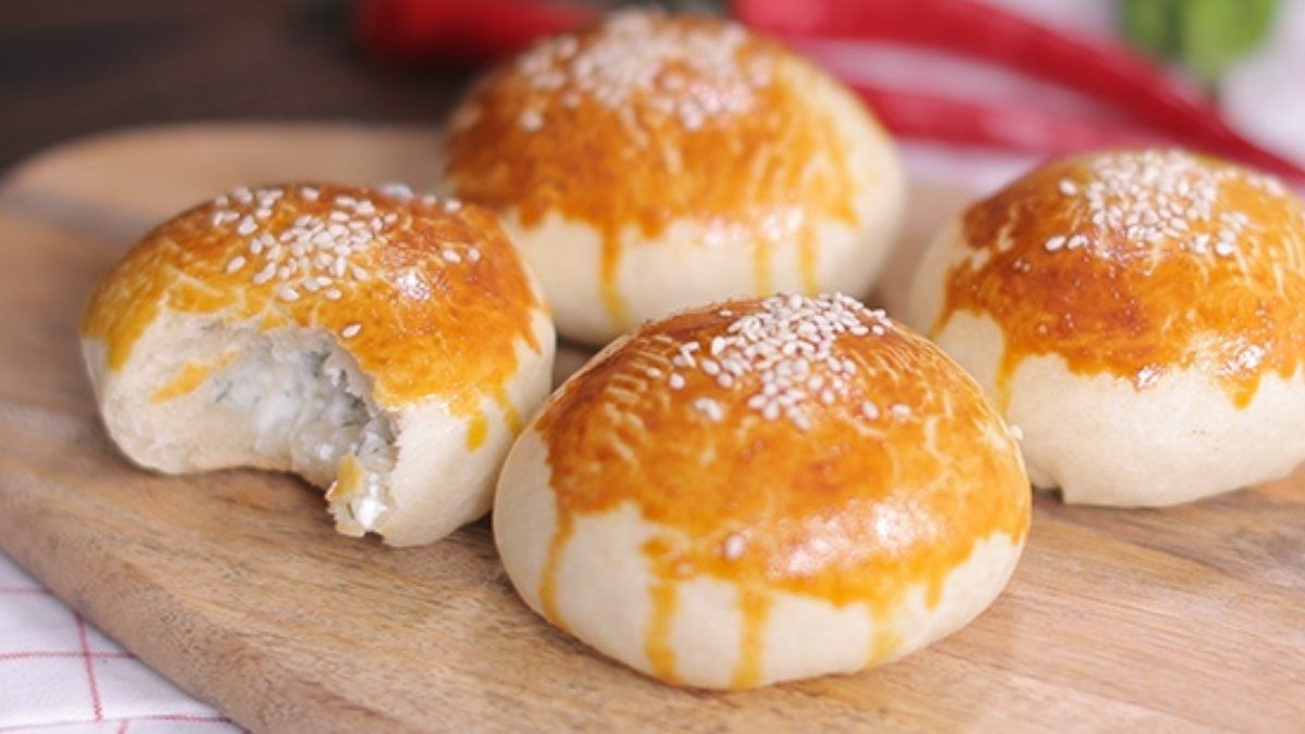 Doğradığınız yeşilliklerle peynirle bir kapta karıştırın. Mayalanan hamurdan istediğiniz büyüklükte parçalar koparın ve elinizle zeminde açın. Orta kısmına harçtan koyup kenarlardan kapatın ve yuvarlak top haline getirip fırın kabına yerleştirin.