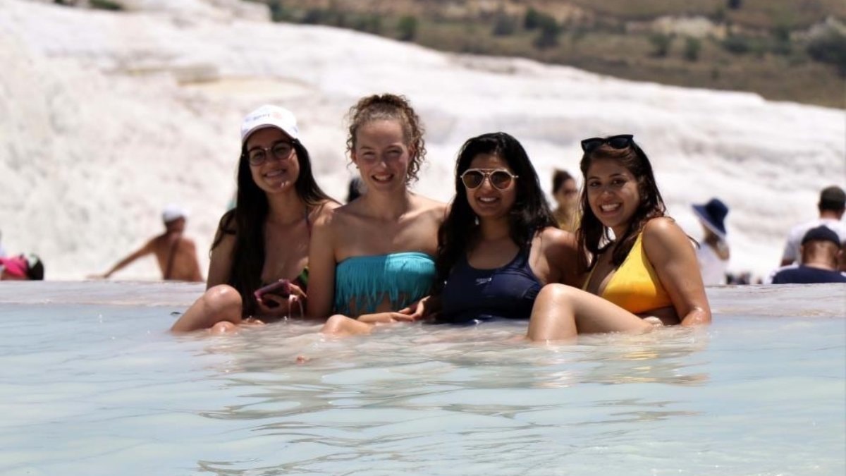 Pamukkale, güzelliğinin yanı sıra yanında bulunan Antik Kleopatra havuzuyla da dikkat çekti.