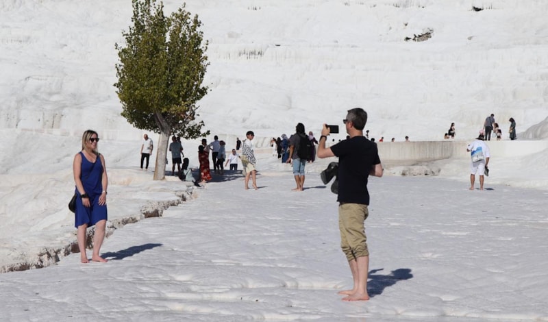 Pamukkale’nin keyfini süren Nuri Altıntepe, “Hava güzel ve günü boş geçirmeyelim diye buraya geldik. Burada vakit güzel ve eğlenceli geçiyor. Herkesin gelip görmesini tavsiye ederim. Burası devamlı kalabalık. Beyazlık gerçekten muazzam ve yerli ile yabancı turistler rağbet gösteriyor.” dedi.