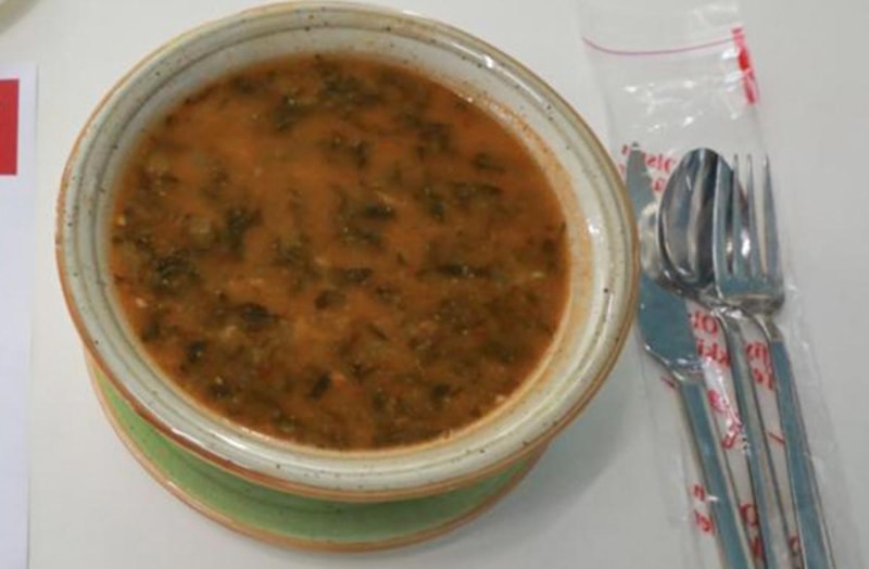 Çorba, karalahana, kuru soğan, su, mısır unu, barbunya, haşlanmış tane mısır kullanılarak üretiliyor.