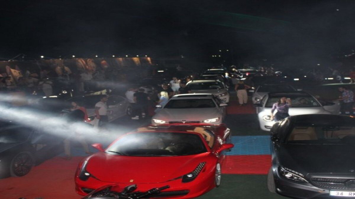 Alanya Yat Limanı'nda faaliyet gösteren bir gece kulübünün önünde bulunan ve aynı zamanda otopark olarak kullanılan alanda gerçekleştirilen partiye, sadece otomobillerle girilebildi.