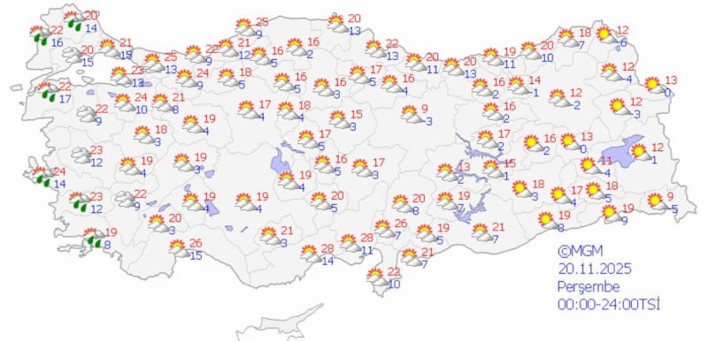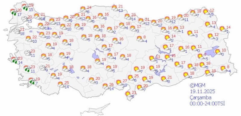 Yurdun diğer bölgelerinde ise hava parçalı ve az bulutlu olacak.