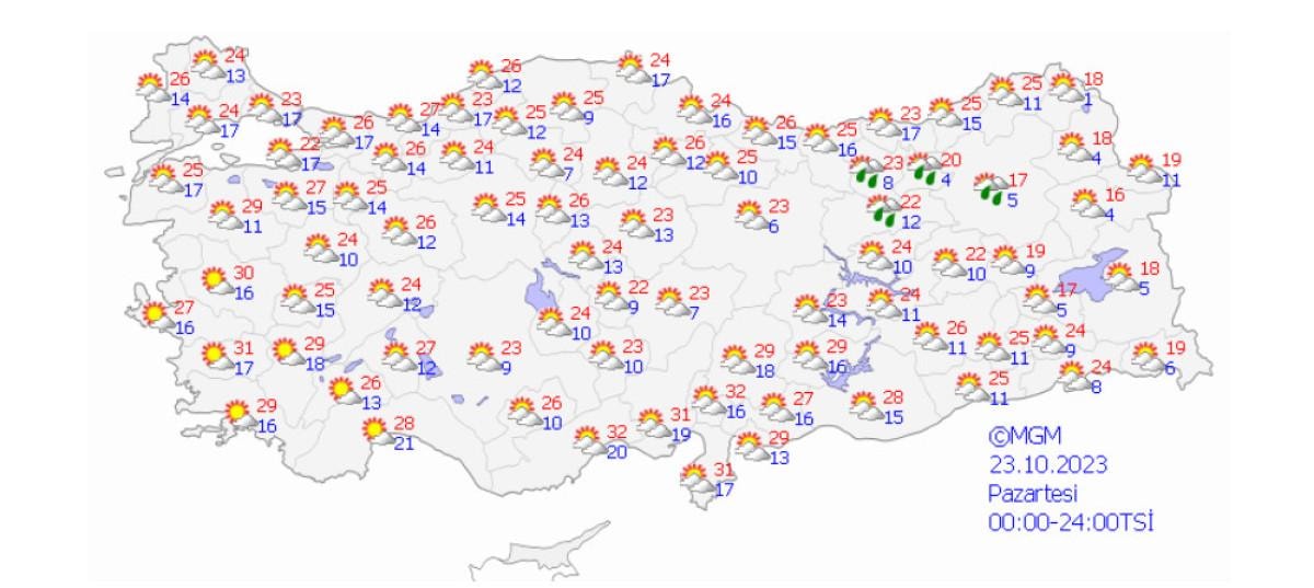 Hava sıcaklıkları yurt genelinde artacak, yağışlı sistem 20 Ekim Cuma günü itibarıyla yurdu terk edecek.
