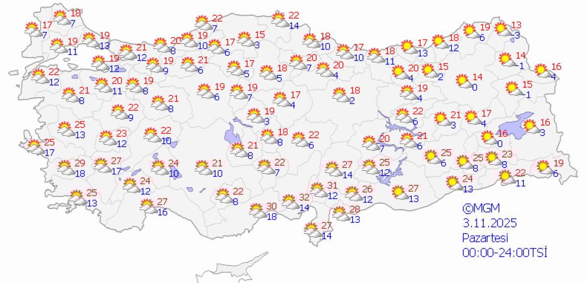 - Vatandaşlara, sabah sisine ve ani sıcaklık farklarına dikkat etmeleri önerildi.