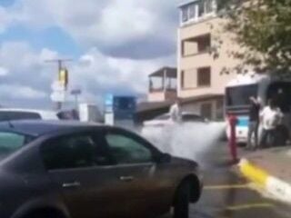 Tazyikli suyu gören bazı araç sahipleri ise bu durumu fırsata çevirdi. Cadde üzerine akan suyu gören araç sahipleri, sırayla suyun önünde manevra yaparak araçlarını yıkadı.