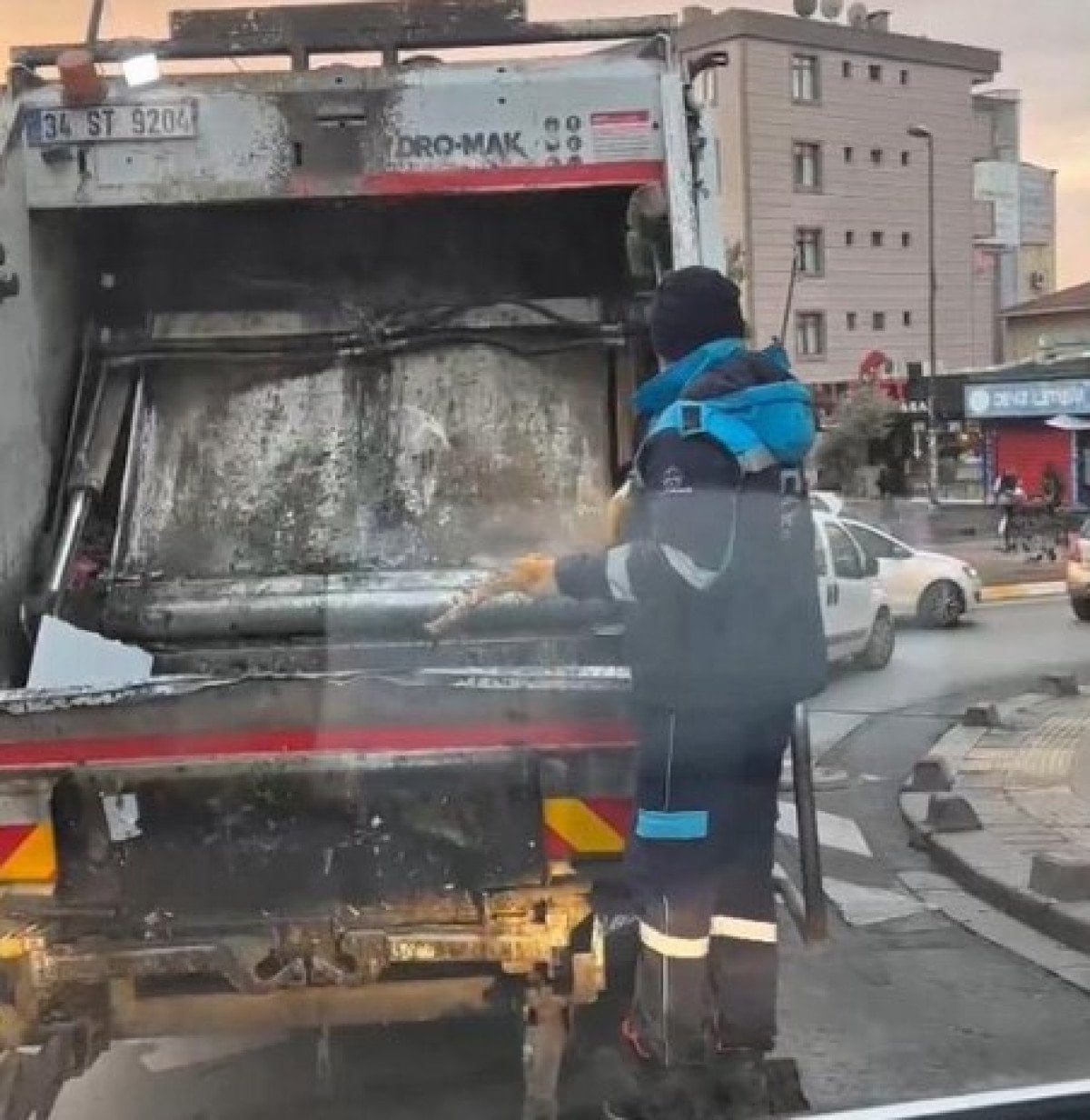 - İstanbul Pendik'te temizlik görevlisi Bilgin Kaplan, çöp konteynerinin yanında bulduğu bağlamayı kamyon kasasında çaldı.