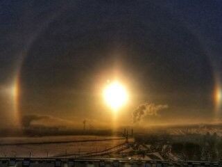 'Yalancı güneş' ya da Latince adıyla 'parhelia' olarak bilinen bu ender görüntü, ışığın kırılması sonucu oluşan ve nadir de olsa gözlemlenebilen bir doğa olayı.