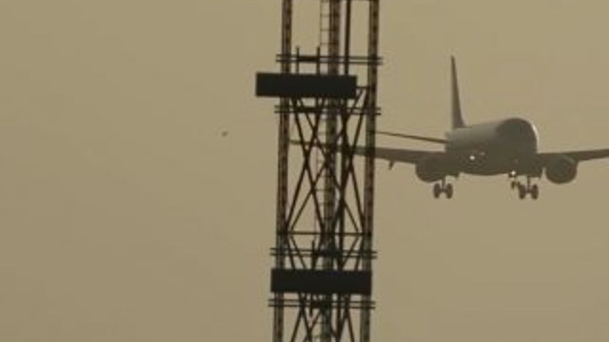 Leeds Bradford Havalimanı'na inmeye çalışan bir uçağın fırtına ile mücadelesi görenleri hayrete düşürdü.