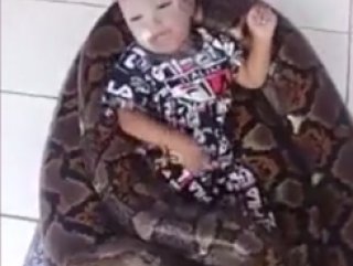 Endonezya'da küçük bir erkek çocuğunun dev pitonla olan videosunu görenler, küçük çocuğun cesaretine hayran kalıyor.