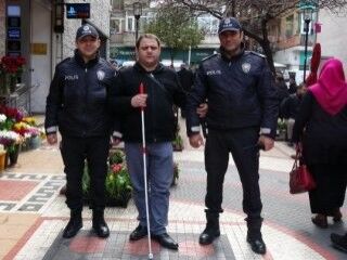 Trabzon Emniyet Müdürlüğü'nde görevli polis memurları da engellilere yardım edebilmenin mutluluğunu yaşadıklarını belirterek, "Gencebay kardeşimizin eli, ayağı ve gözü olmaya çalışıyoruz. Yardım edebildiğimizi ve onu mutlu ettiğimizi gördükçe emniyet teşkilatı olarak mutlu oluyoruz." diyor.