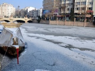 Hava sıcaklığının, sıfırın altında olmak üzere gece 16, gündüz 9 derece ölçüldüğü Eskişehir'deki Porsuk Çayı'nda buz tabakaları oluştu. Çayın donduğunu gören bazı vatandaşlar, fotoğraf çektirdi.