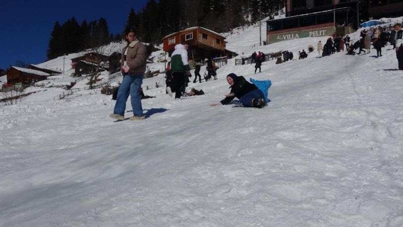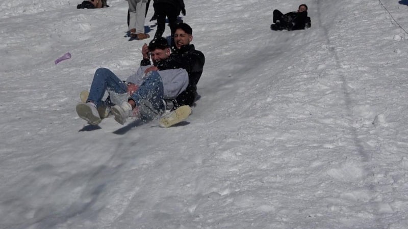 Şu anda muşamba ile kaymak biraz daha mahalle işi olması daha güzel. Güvenlik görevlisiyim, nöbetten çıkıp uyumadan buraya geldik” dedi.
