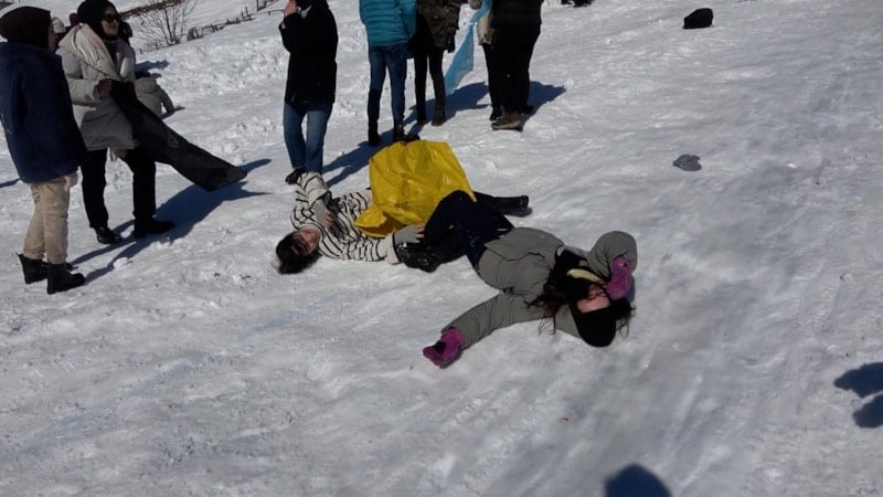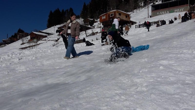 Festival alanına ulaşanlardan kimi kar topu oynayıp kardan adam yaparak vakit geçirirken, kimileri de poşetlerle yaklaşık 75 metrelik doğal pistten kaydı.