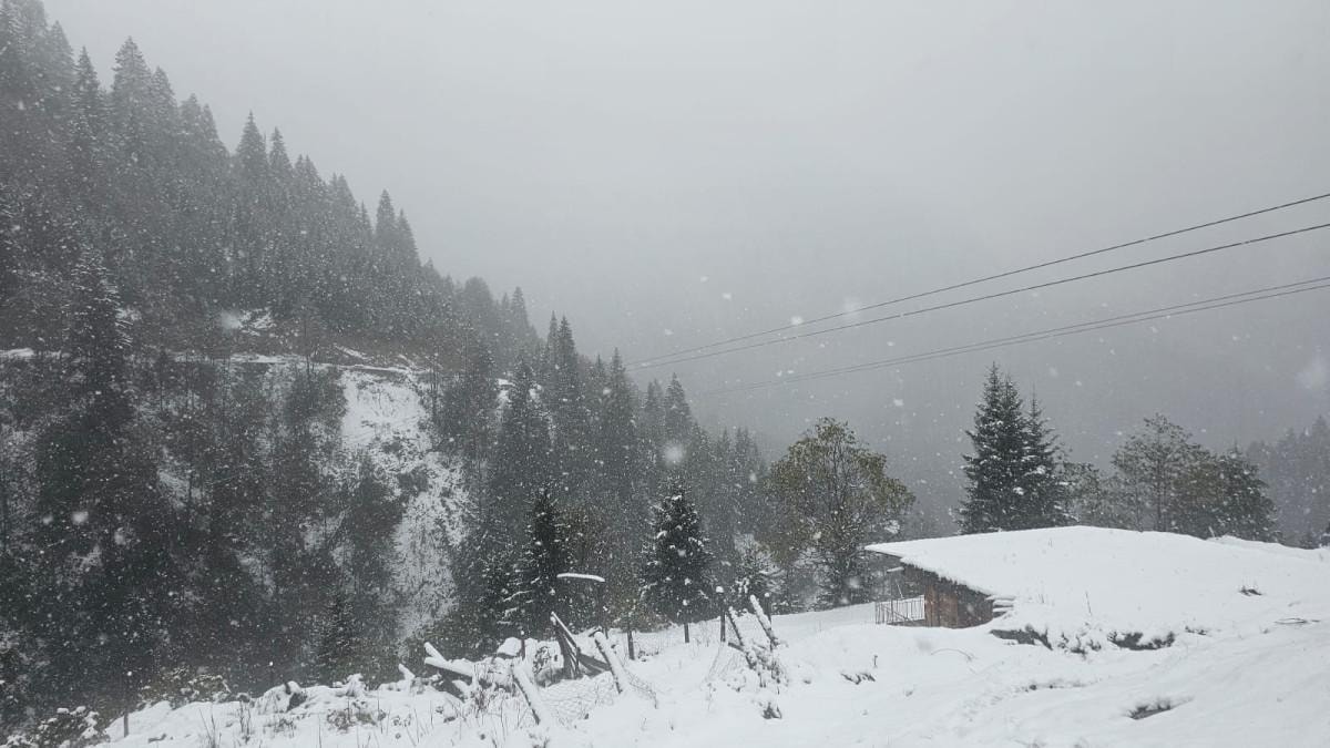 Kar yağışının etkili olduğu Rize'nin Çamlıhemşin ilçesindeki ünlü turizm merkezi Ayder Yaylası da karla kaplandı.