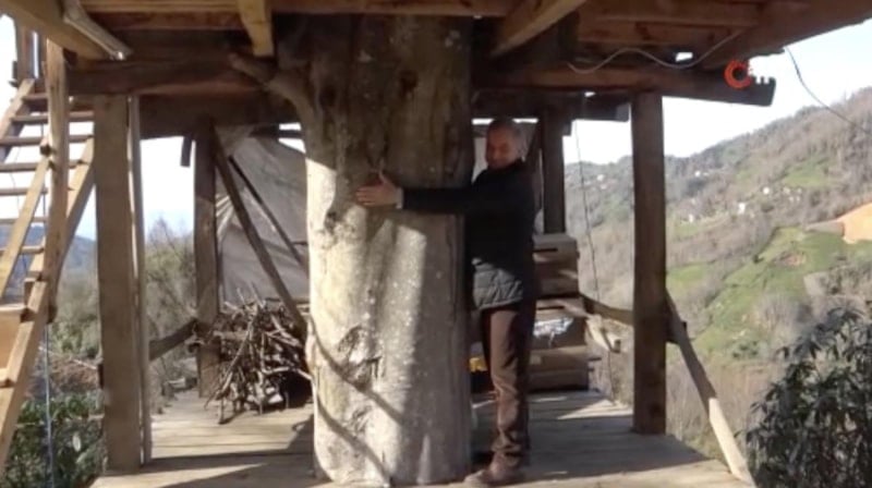 Rizeli 61 yaşındaki Ali Hamdi Uzunhasanoğlu, 150 yıllık ağacın gövdesine 2+1 ev yaptı. Ağaç evi görenler ise şaşkınlıklarını gizleyemiyor.