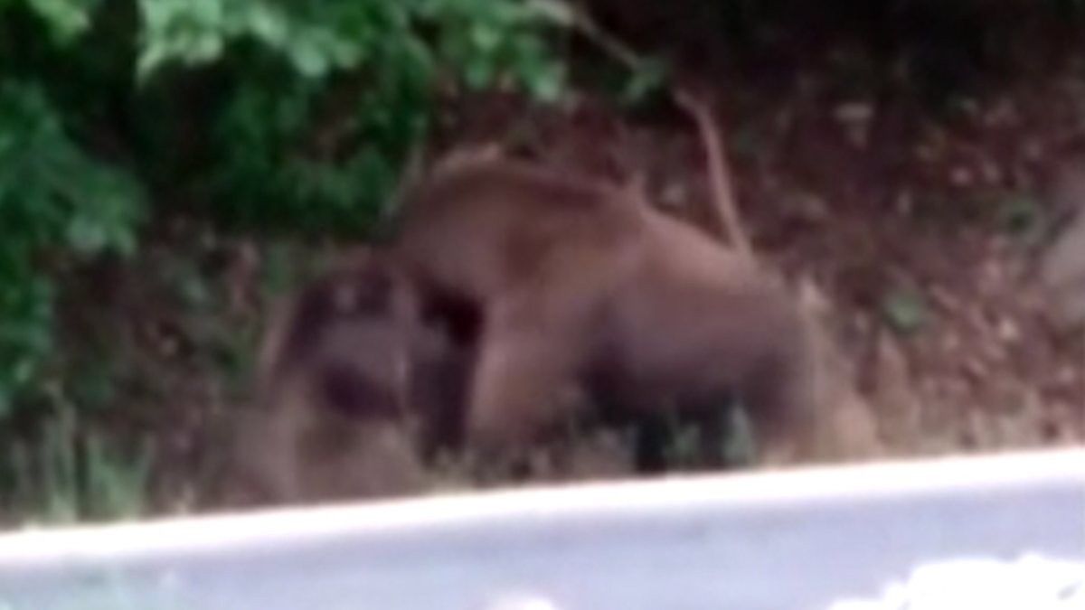 Söz konusu güzergahta yolculuk yapan vatandaşlar, kavga etmeye başlayan ayıları cep telefonu kamerasıyla görüntüledi.