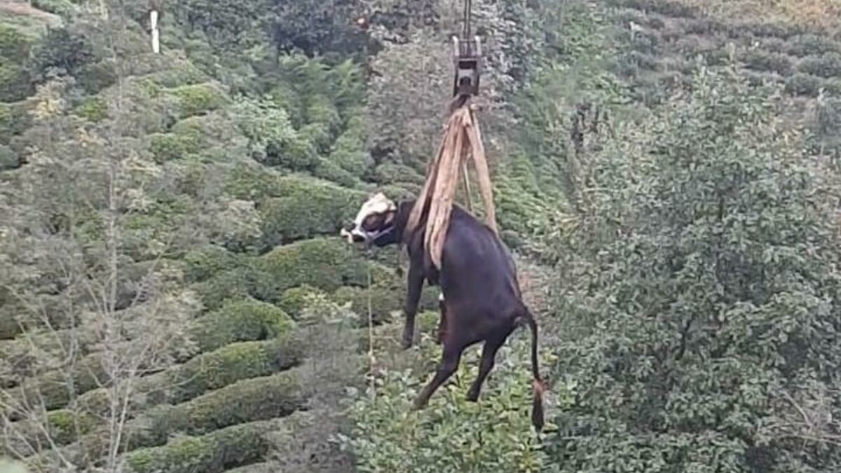 Rize Merkeze bağlı Pehlivantaşı Mahallesi’nde Sinan Akbulut’un kamyonete bindirmek istediği boğa, sahibinin elinden kaçarak yuvarlandığı yamaçtan düştü.