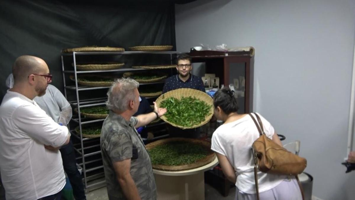Ondan sonra çay fabrikasına giderek hem el yapımı ve hem fabrikasyon kuru çayın yapımını gördüler, 10 farklı çayın da tadımını yaptılar.