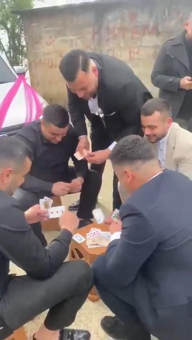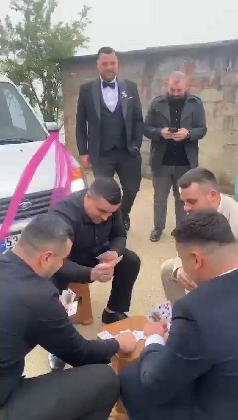 4 arkadaş düğün konvoyunun önünü kesme amaçlı iskambil oynayarak damattan bahşiş aldı.