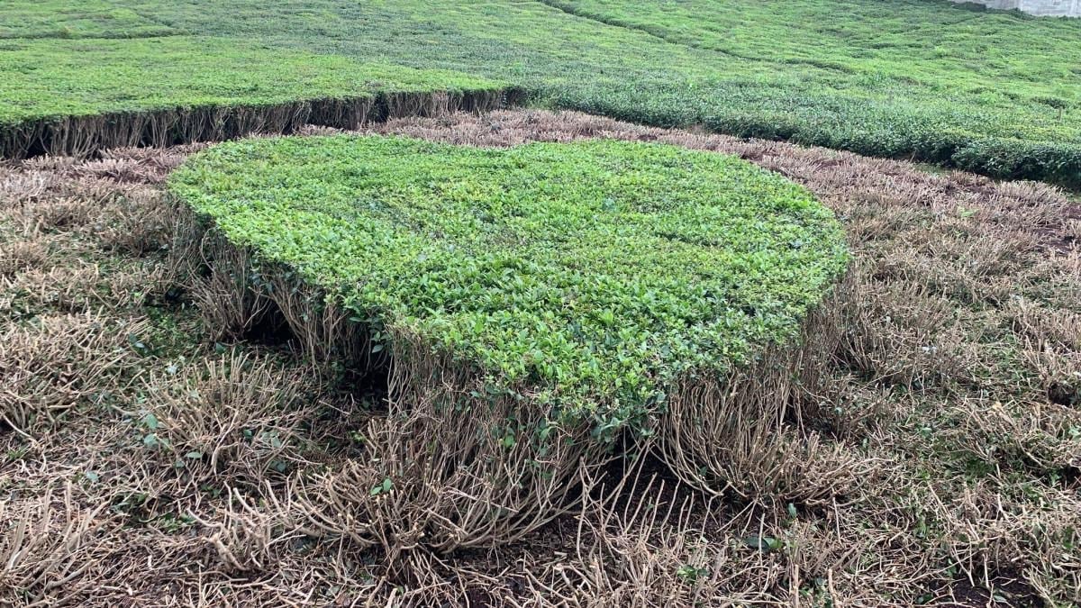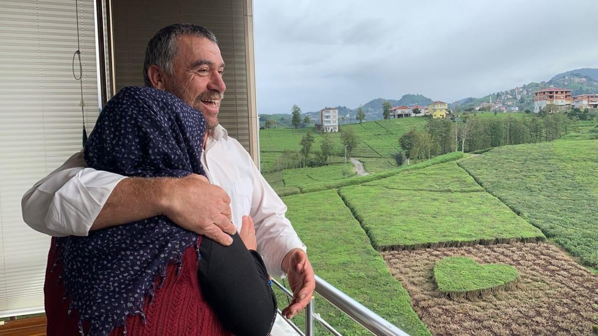 28 yıllık evliliğinde eşine çeşitli sürprizler yapan Osman Öztürk (48), bu kez de ona sevgisini evinin önünde yamaç arazide yer alan çay bahçesini kalp şeklinde budayarak gösterdi. Öztürk, budadığı bahçesinin ortasında kalp şeklinde yeşil bir alan bıraktı.