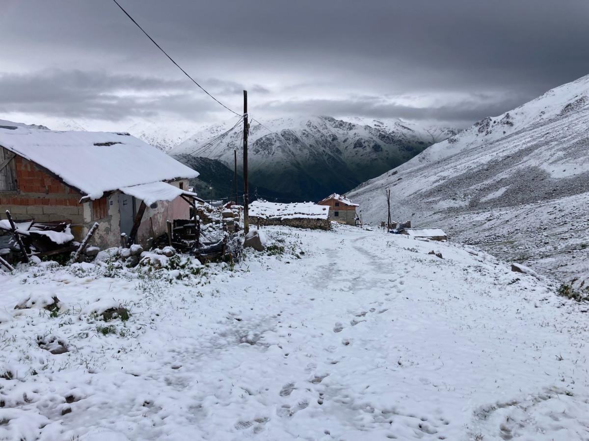 Kaçkar Dağları’nın eteklerinde bulunan Çamlıhemşin ilçesine bağlı 2 bin 450 rakımlı Başyayla da tamamen beyaza büründü.