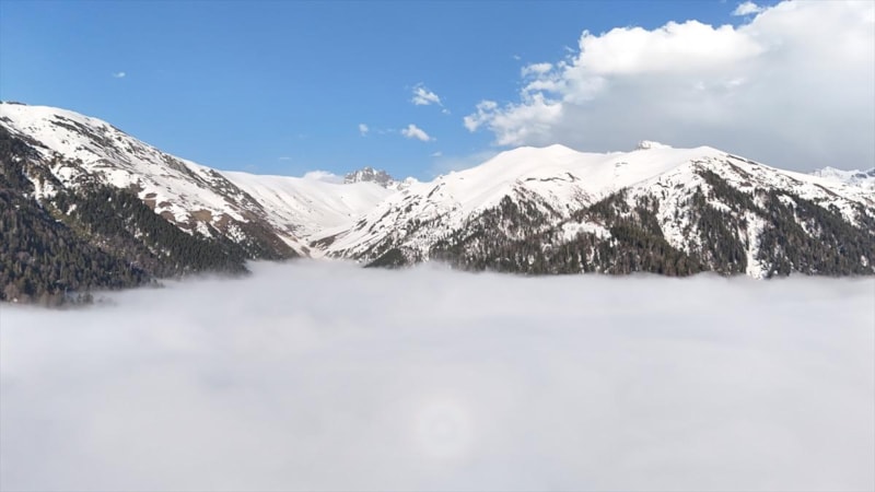 Beyaza bürünen Kaçkar Dağları'nın eteğindeki "sis denizi" görenleri kendisine hayran bırakan olağanüstü görüntüler oluşturdu.