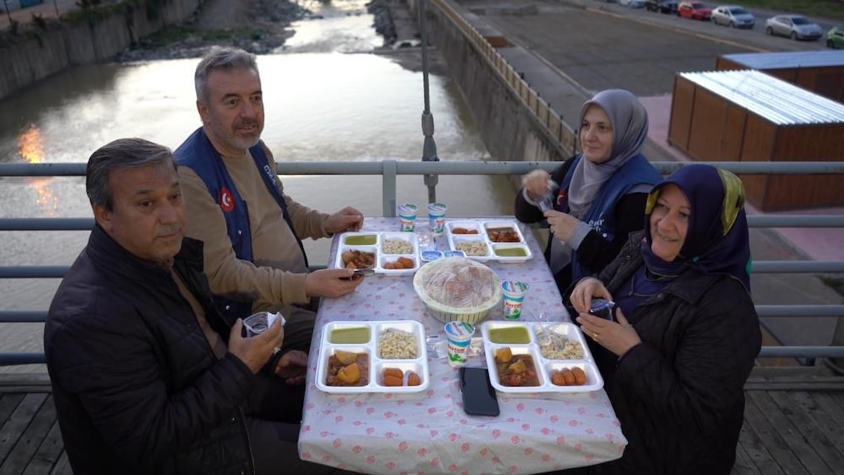 Köprü üzerinde kurulan masa ve sandalyelerle bir araya gelen vatandaşlar iftar yemeklerini aldı. Deprem bölgesinden de gelen vatandaşlarında katılım gösterdiği yemekte 500 kişi oruç açtı.