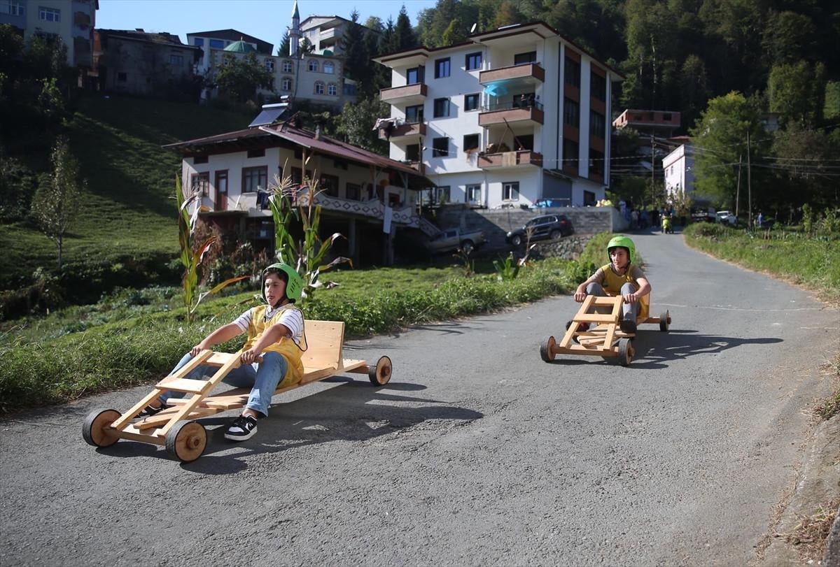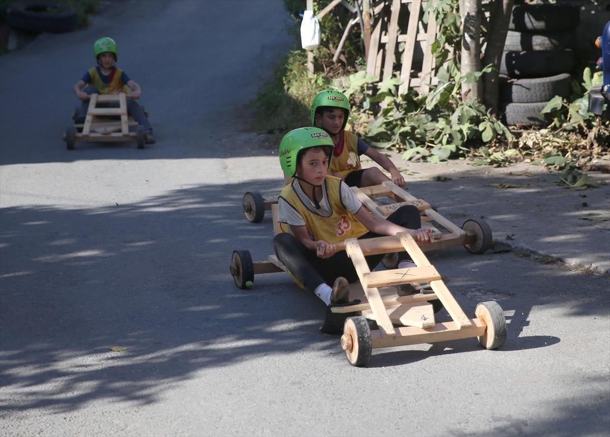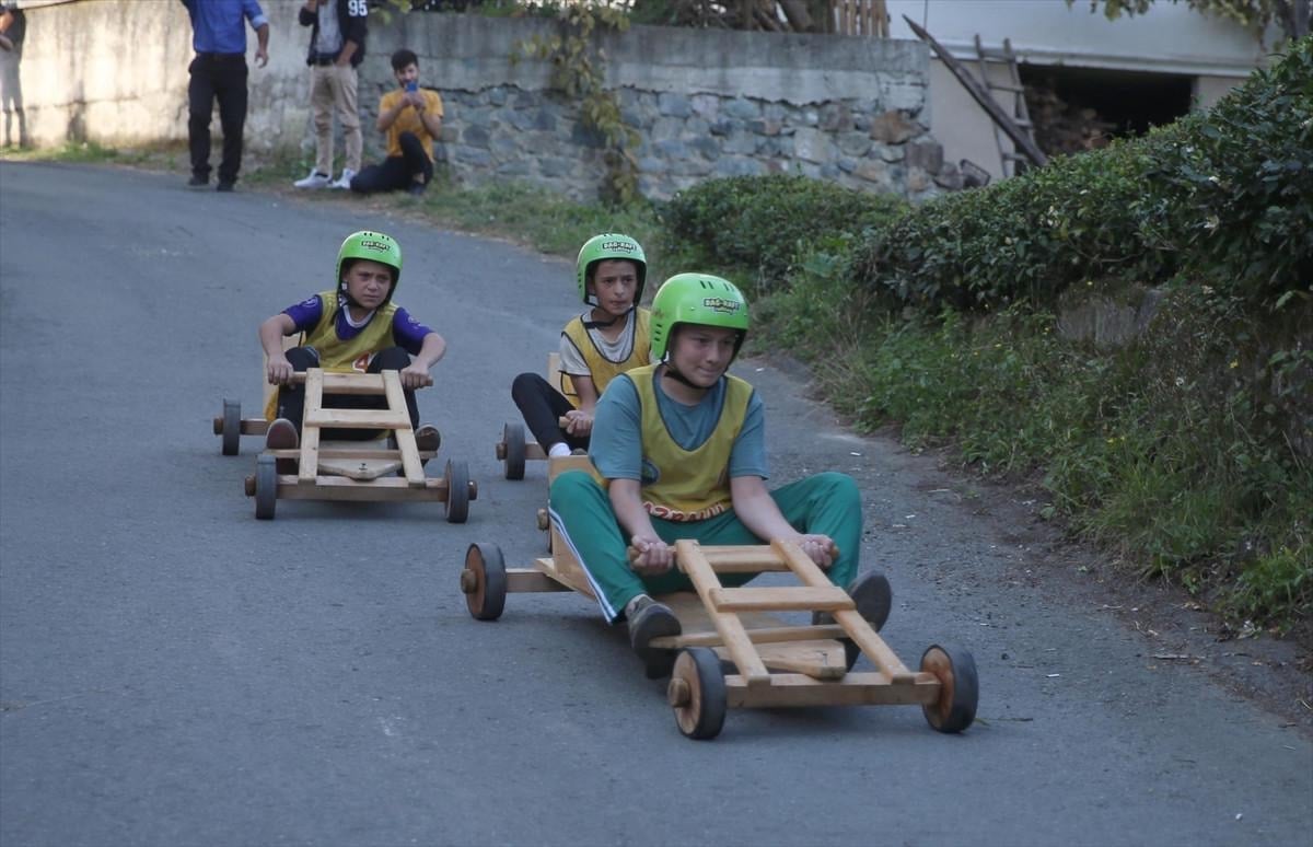 Yarışlar, tahta arabaların parkura uygun olup olmadığının kontrol edilmesinin ardından başladı. Yaşlılar ve çocuklar 200 metre, gençler ise 1 kilometrelik parkurda mücadele etti.