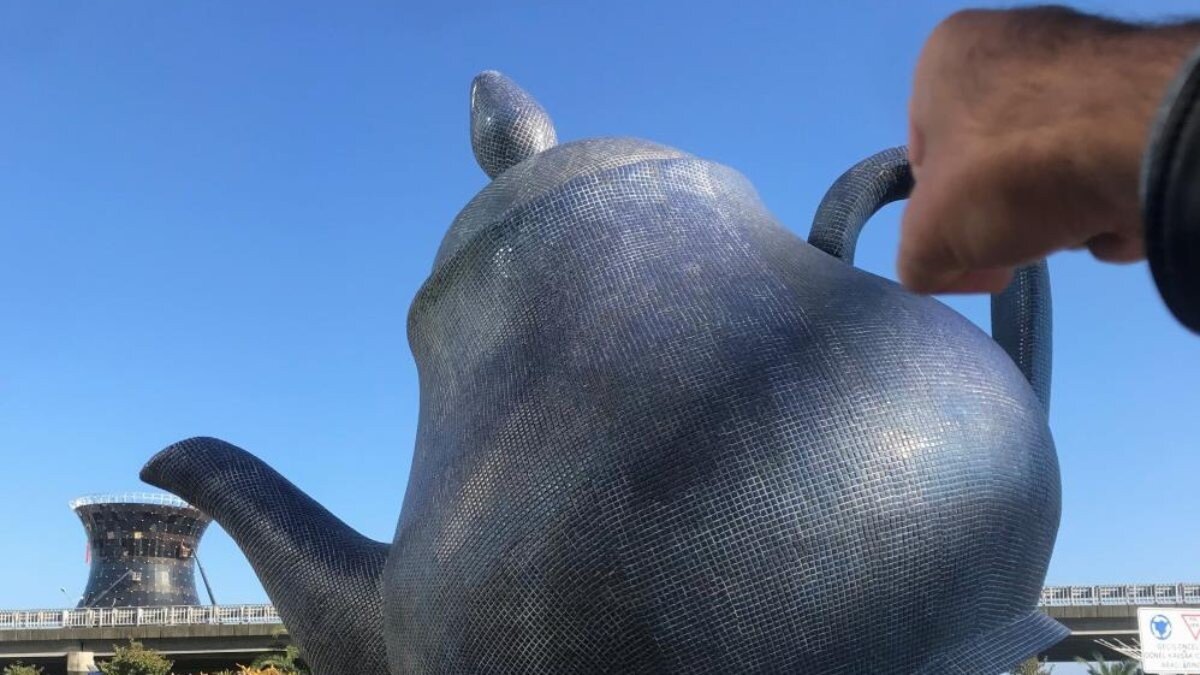 Yıllar önce belediye binası önüne yerleştirilen çaydanlık heykeli, Çay Çarşısı ile kıymete bindi.