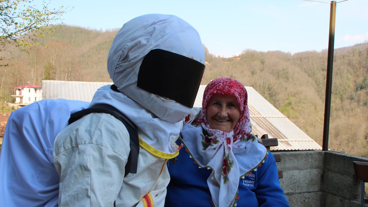 Rize'de Filika dergisi editörleri Mehmet Akif Sipahioğlu (25), Hilal Çayırcı (25), Seher Veziroğlu (24) ve Hacer Altoprak (23), kıl çorap ve lastik ayakkabı ile arıcı kıyafeti ve beyaz bezle sarılı motosiklet kaskı takarak kendilerini astronota benzetti.