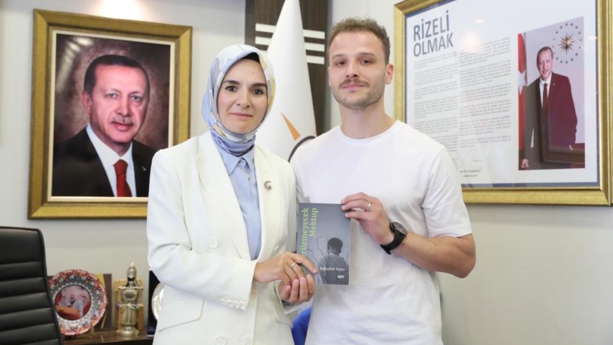 Devlet himayesinde yetişen 23 yaşındaki Doğuşkan Yazıcı, kendi hayat hikayesini anlattığı “Gönderilemeyecek Mektup” adlı kitabını Aile ve Sosyal Hizmetler Bakanı Mahinur Özdemir Göktaş’a hediye etti. Yazıcı, Rize programı kapsamında bir araya geldiği Bakan Göktaş’a, devletin şefkatli ellerinde yetişerek hayata bağlandığını dile getirdi.
