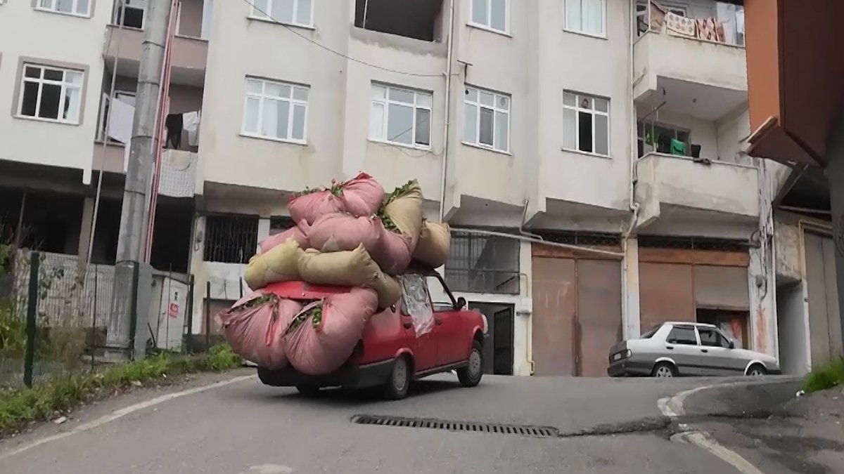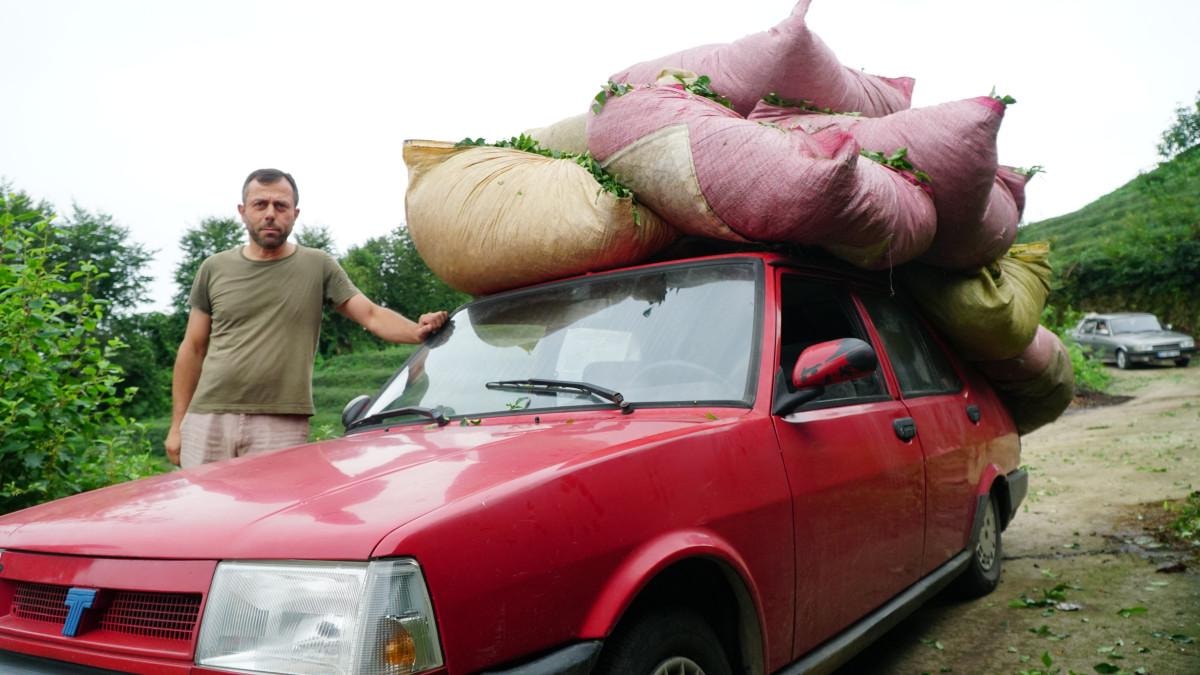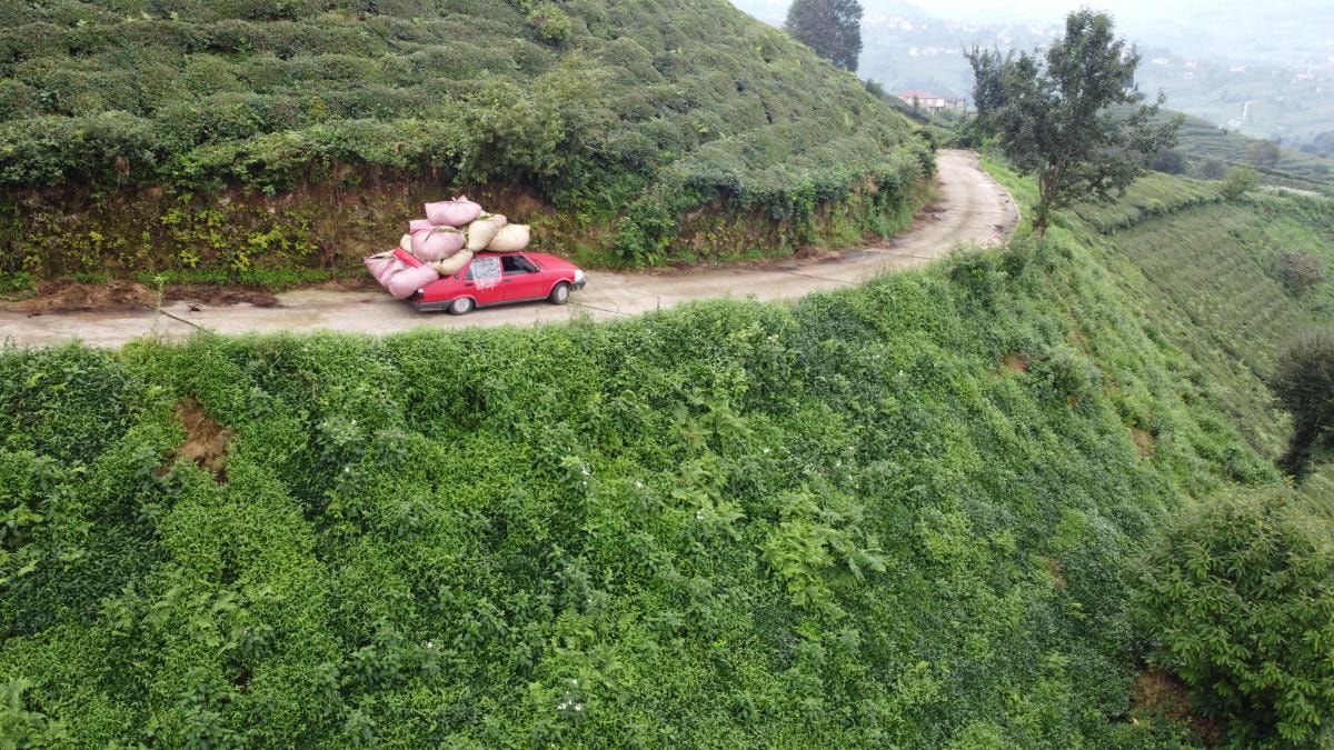 Bölgede kamyoneti olmayan bazı üreticiler, çayları otomobilleriyle taşıyor. Rize’nin Kendirli beldesinde yaşayan çay üreticisi Mümin Ali Köse, bahçesinde hasat ettiği çayları taşırken, 1991 model otomobilini tercih ediyor. Köse, topladığı yaş çayları bohçalara doldurup, aracının içi ve bagajının yanı sıra kaportası üzerinde taşıyıp, alım yerine götürüyor.