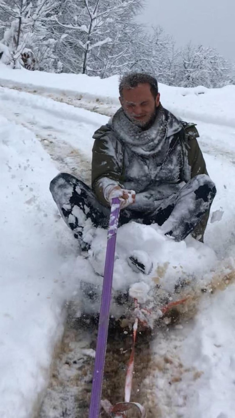 Kar yağışının etkili olduğu ilçelerden Ardeşen ilçesinde Sarimanga Yaylası ve Özgür köylerinde gençler, kar yağışını eğlenceye dönüştürmek için farklı bir yol izledi.